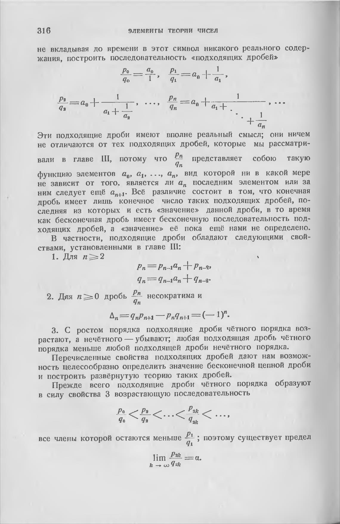 З. С ростом порядка подходящие дроби чётного порядка воз-