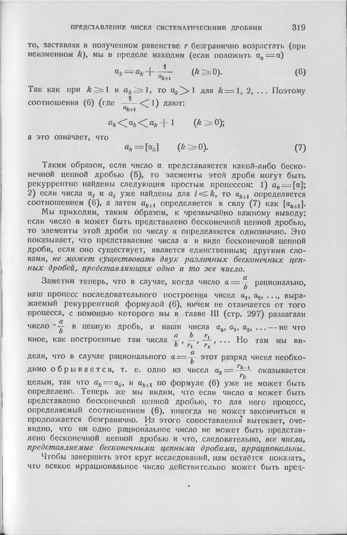 Таким образом, если число а представляется какой-либо беско-