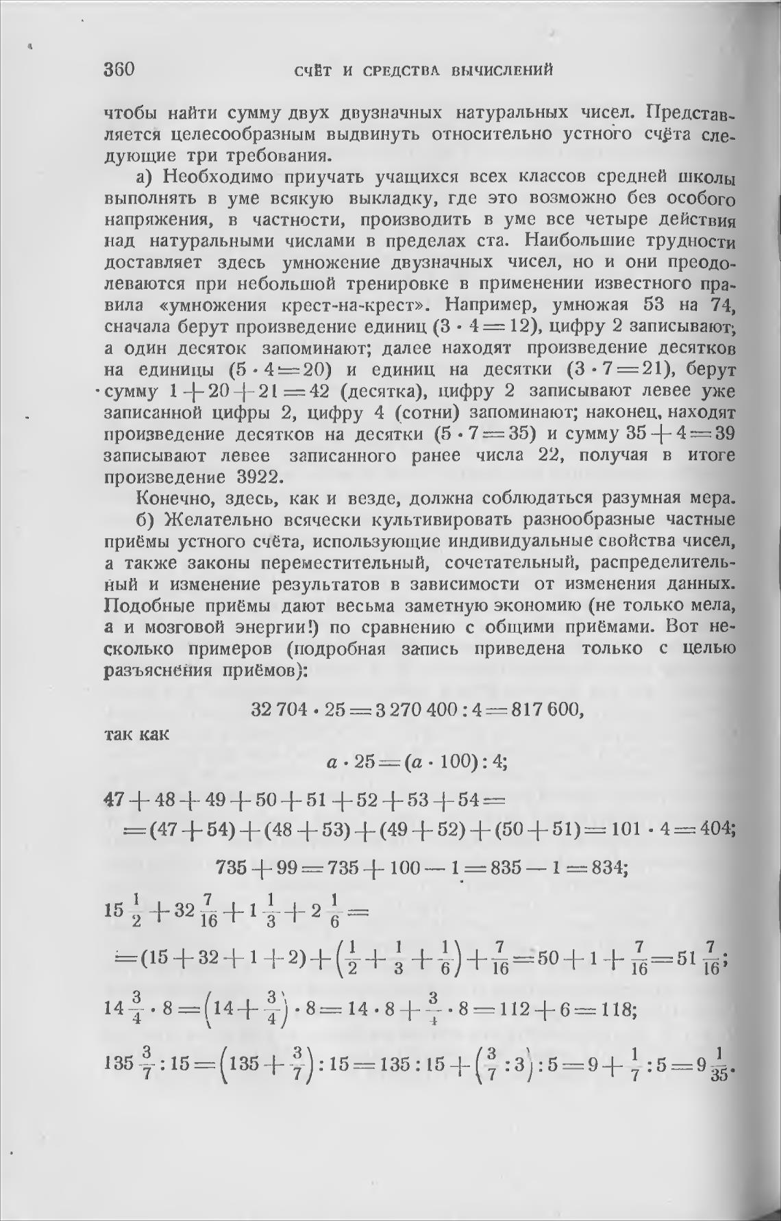 выполнять в уме всякую выкладку, где это возможно без особого