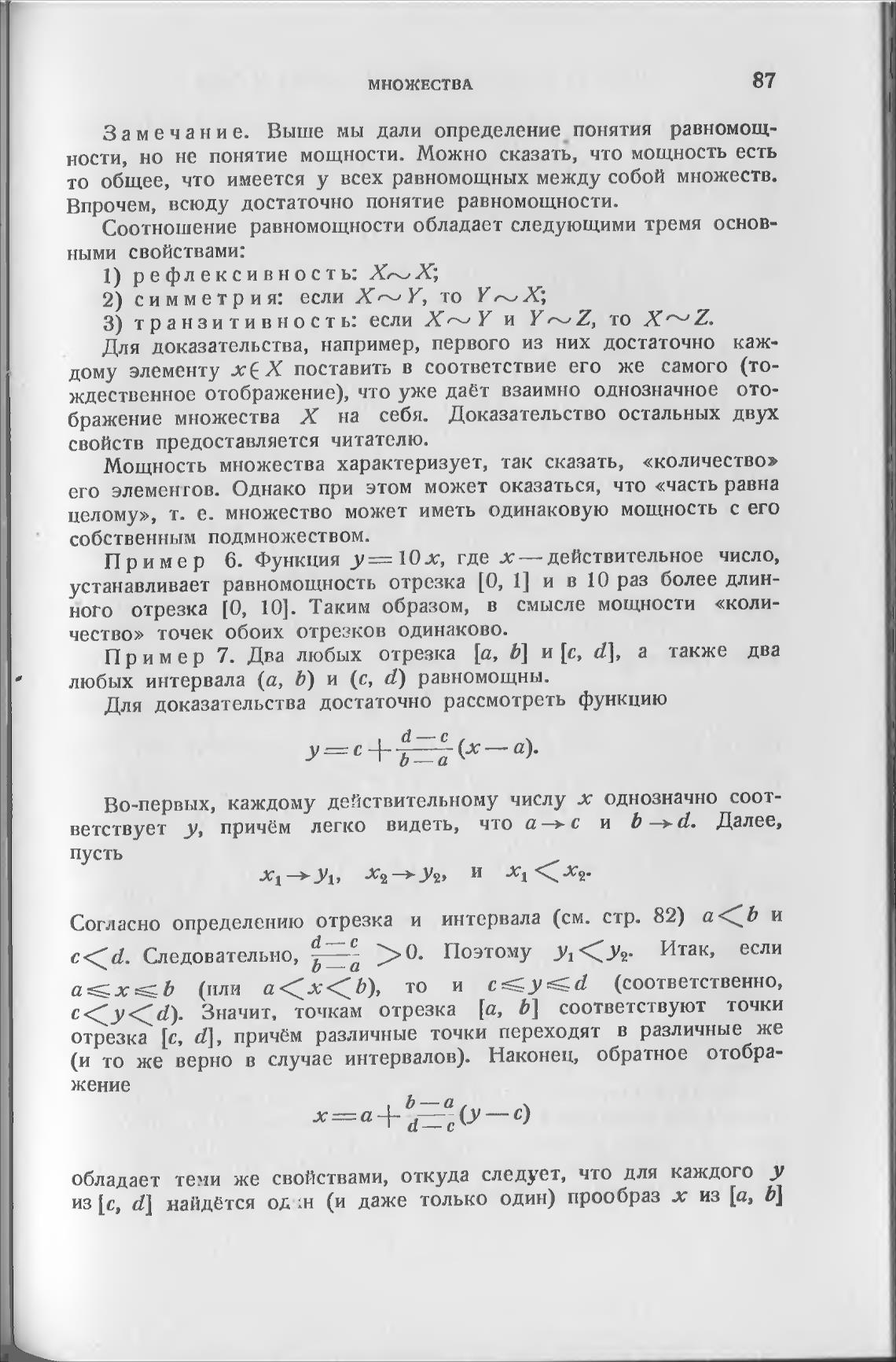 устанавливает равномощность отрезка [0, 1] и в 10 раз более длин-