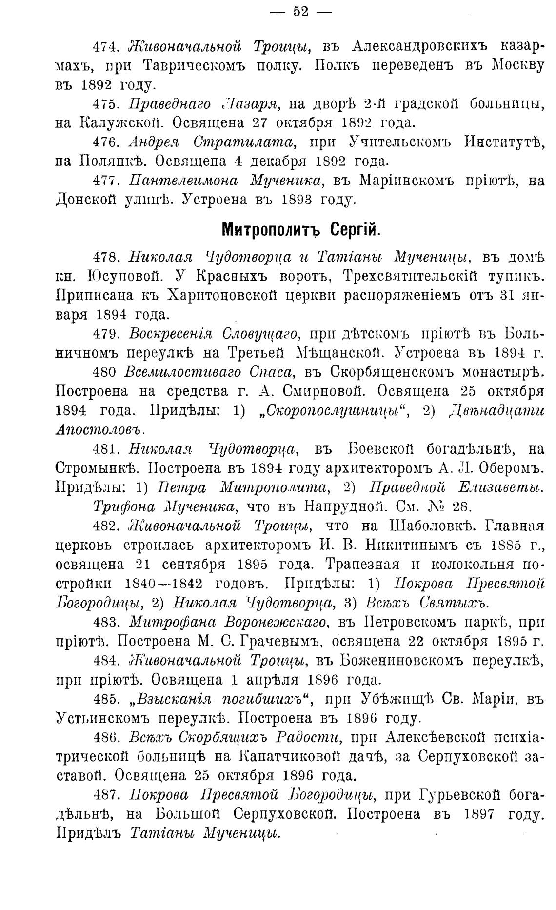 484. Живоначальной Троицы, въ Божениновскомъ переулкгЬ,