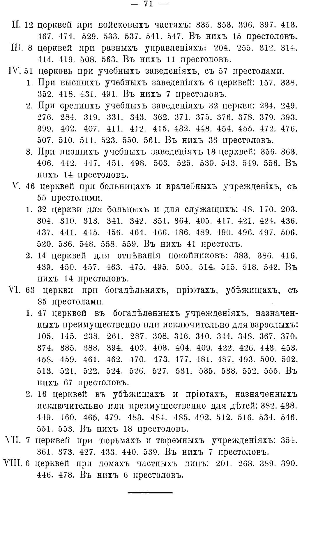 1. 32 церкви для больныхъ и для служащихъ: 48. 170. 203.