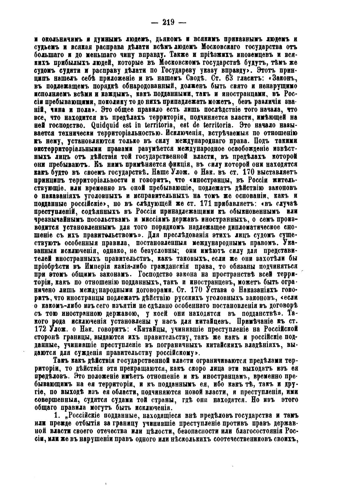 рить, что иностранцы подлежать русскихъ угодовныхъ законовъ, «если