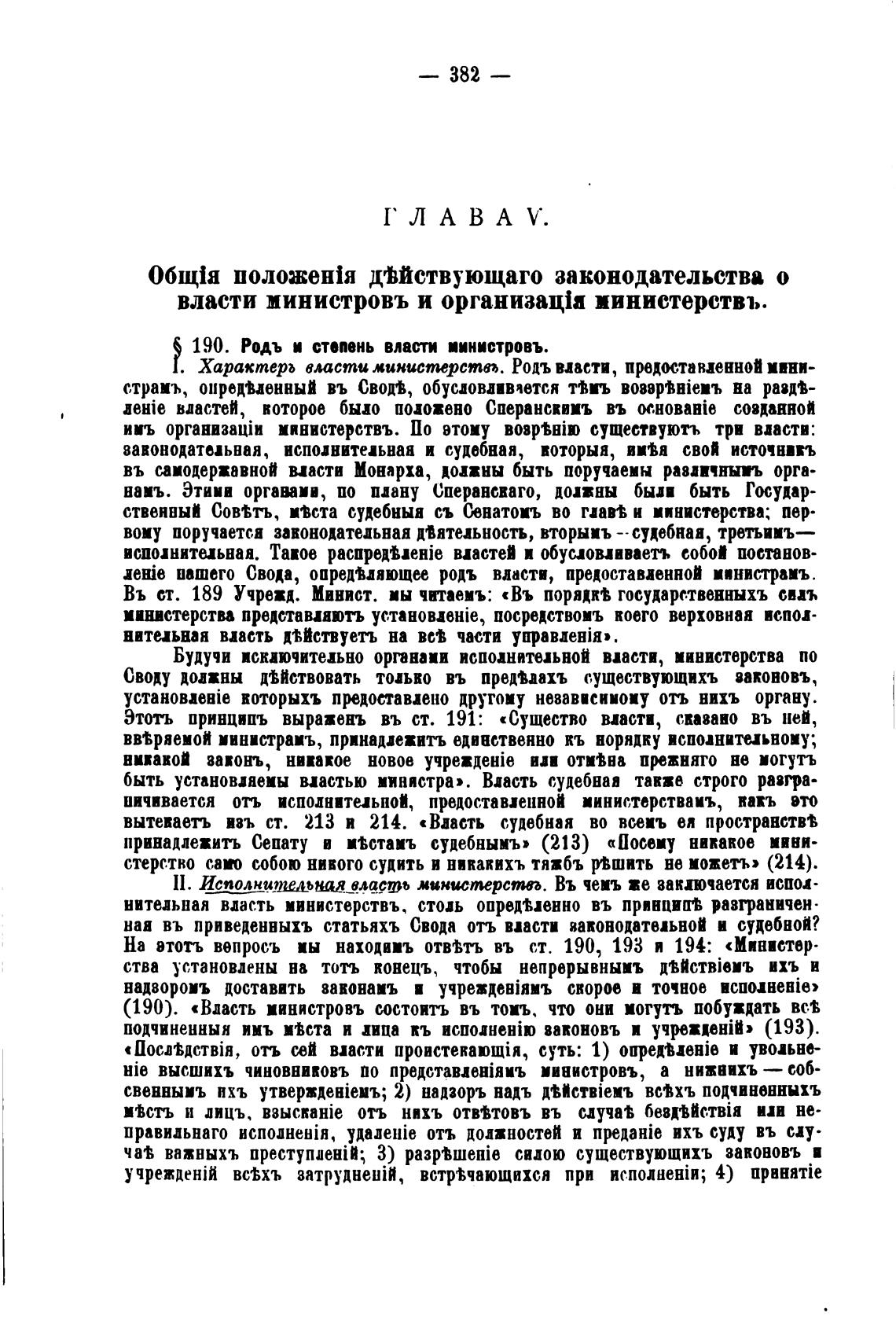 190. Родь и степень власти иинистровъ.