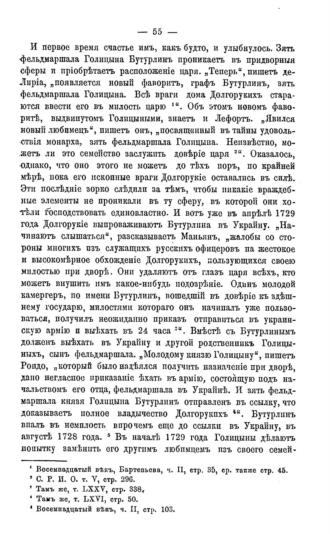 фельдмаршала Голицына Бутурлинъ проникаеть въ придворныя