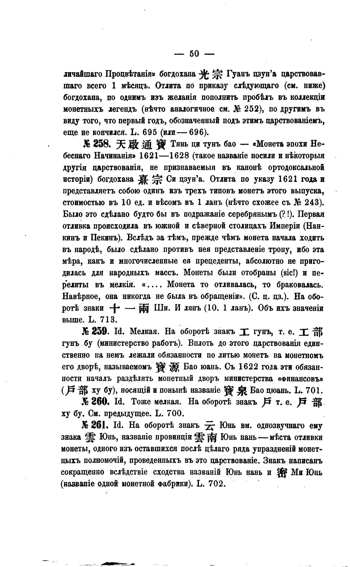 259. Id. Мелкая. На оборой знакъ Л гунъ, т. е.