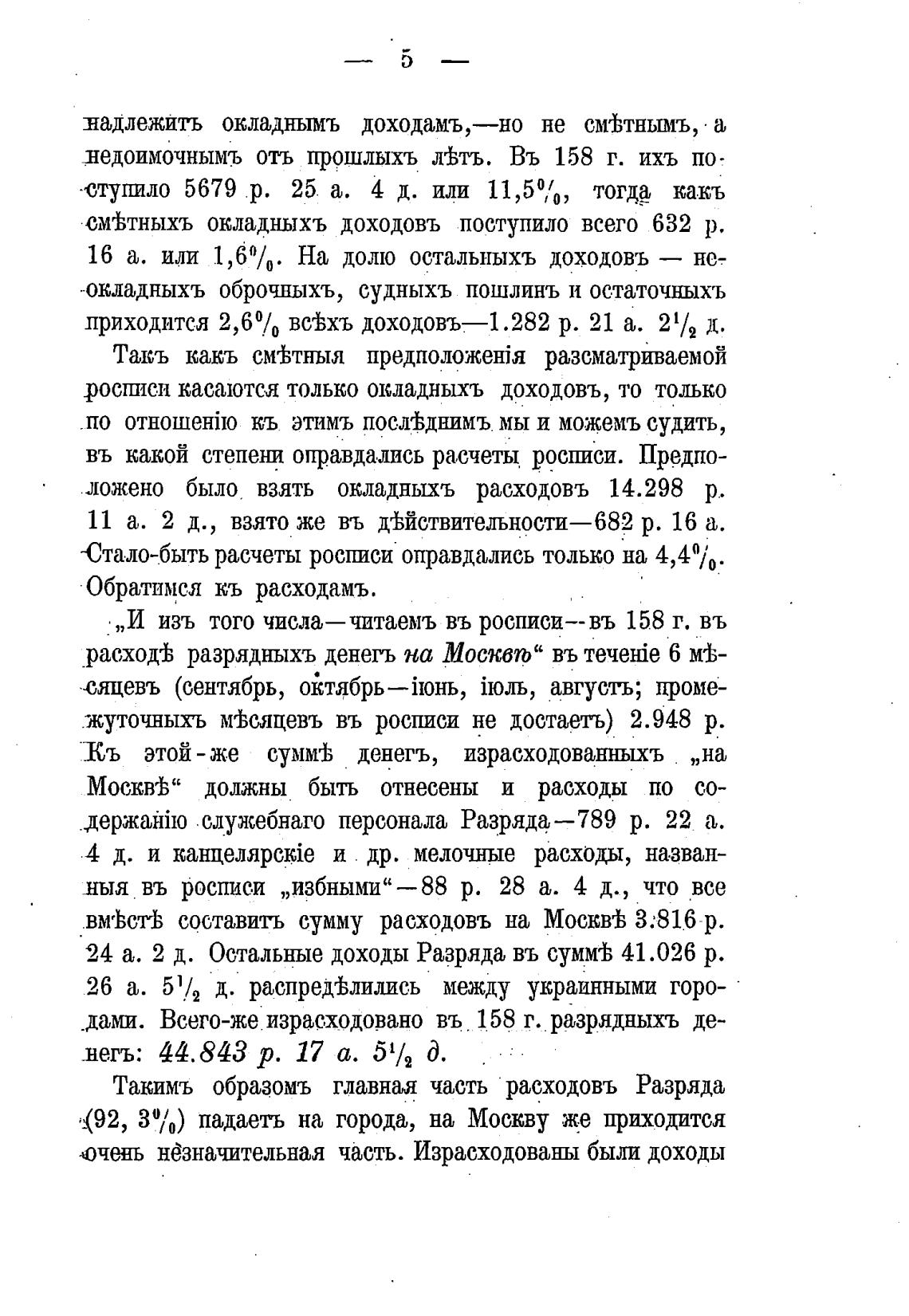 расход± разрядныхъ денегъ на Москт” въ 6 мФ-