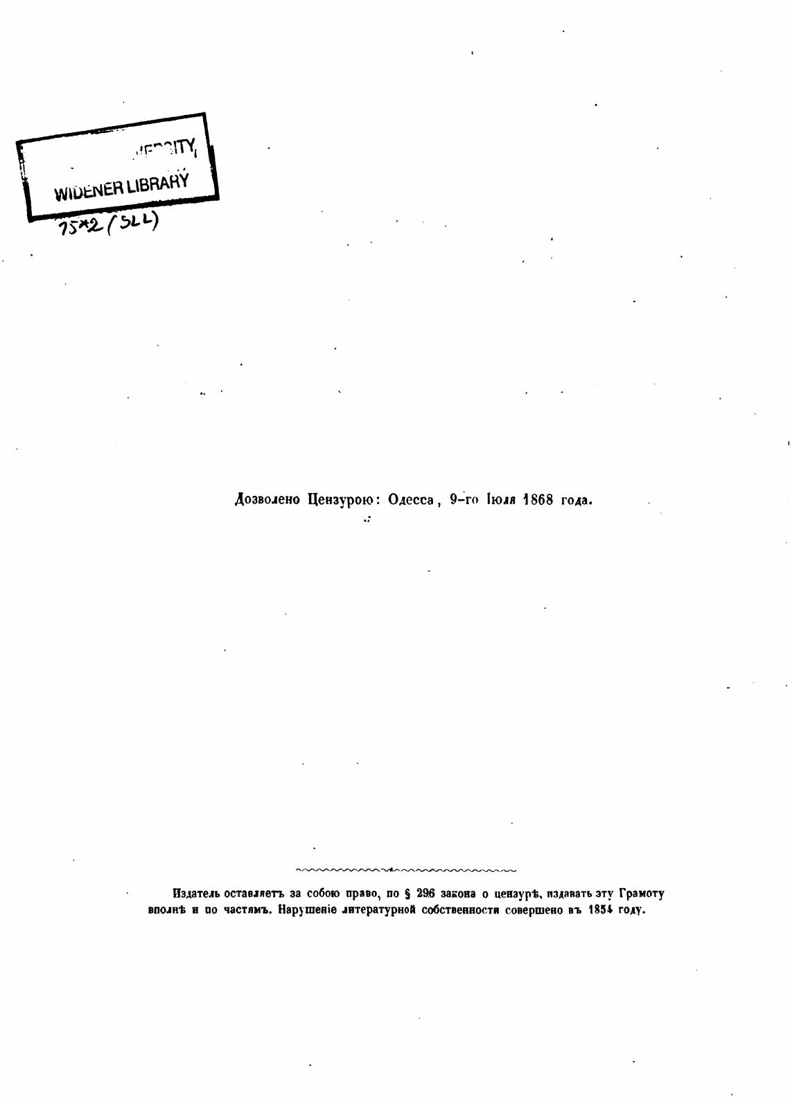 Издатель оставаяеть за собою право, по S 296 за;она о цензур*, пздавать эту Грамоту