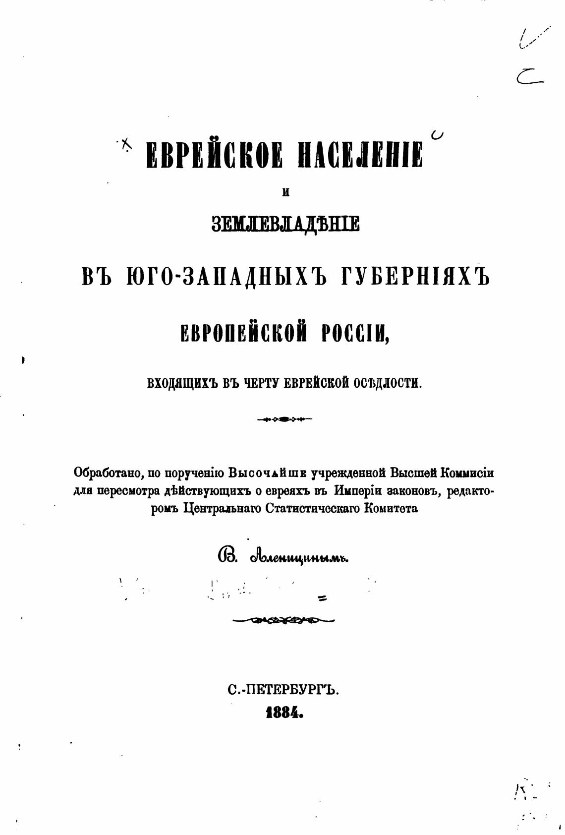ВХОДЯЩИХЪ ВЪ ЧЕРТУ ЕВРЕЙСКОЙ оидлости.