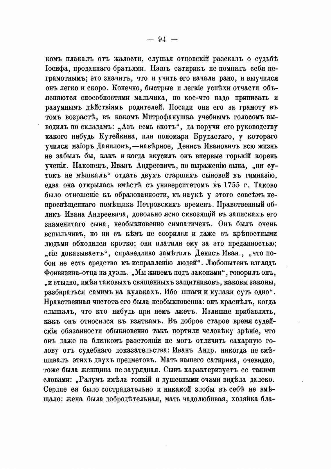 Фонвизина-отца на дуэль. „Мы живемъ подъ законами“ , говориль онъ,