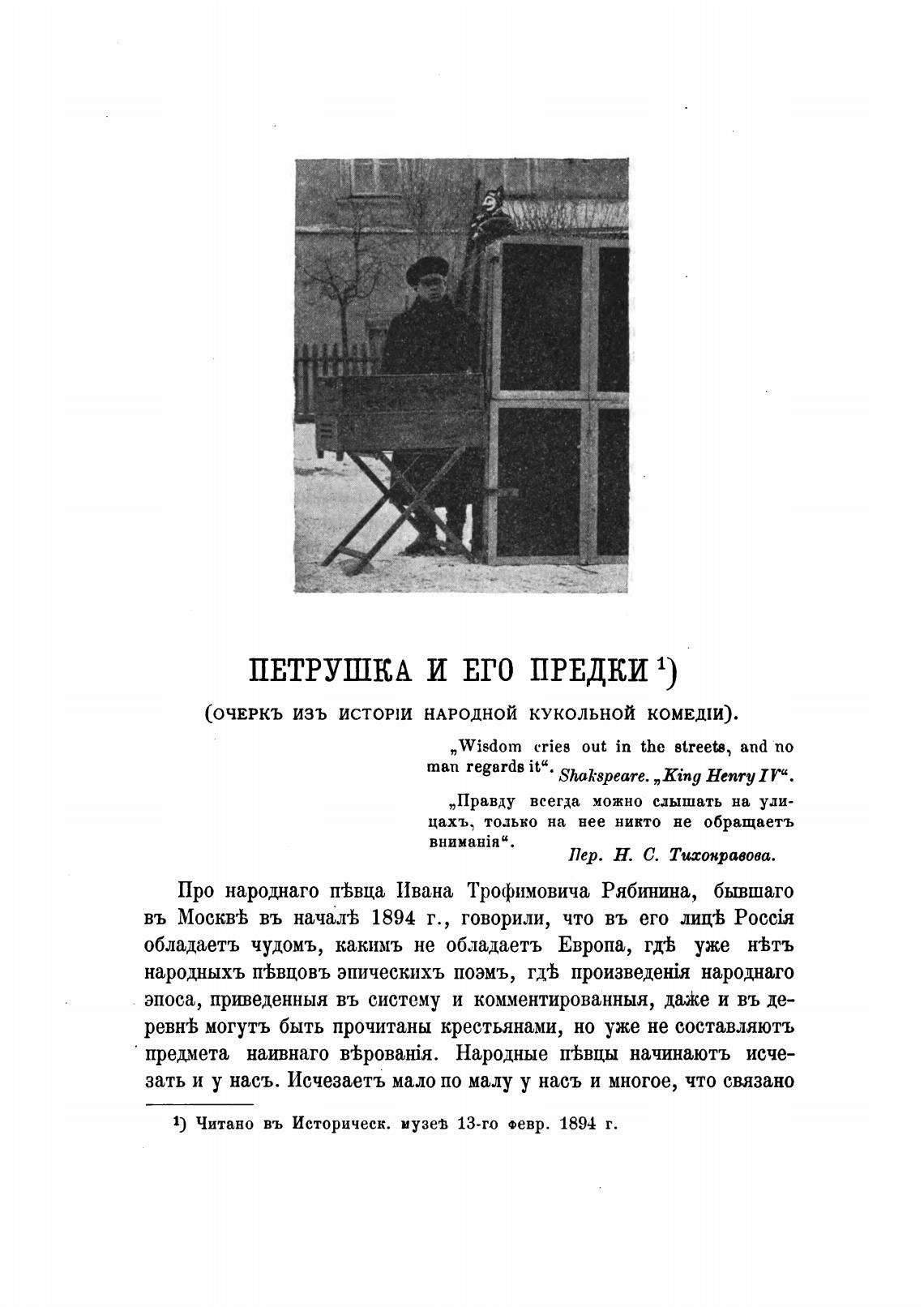 Про народнаго ттЬвца 11вана Трофимовича Рябинина, бывшаго