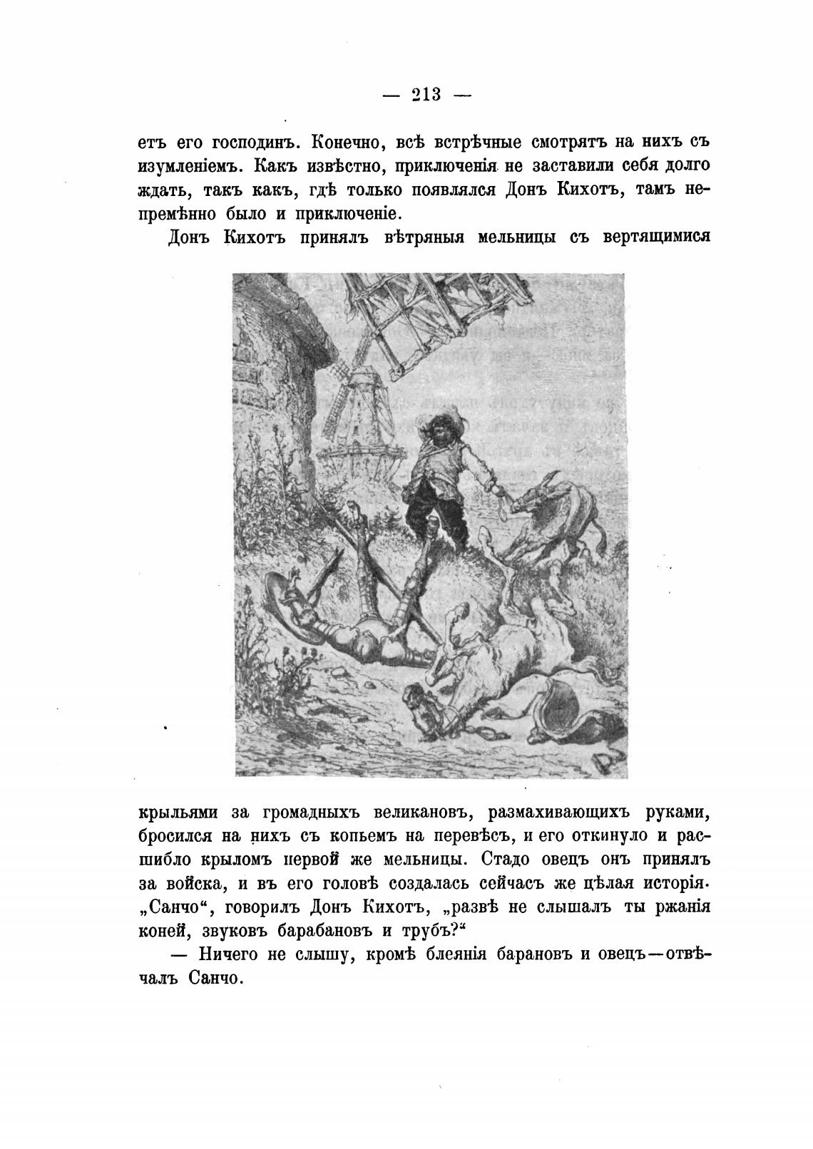„Санчо“, говориль Донь Кихотъ, „разв•Ь не слышалъ ты