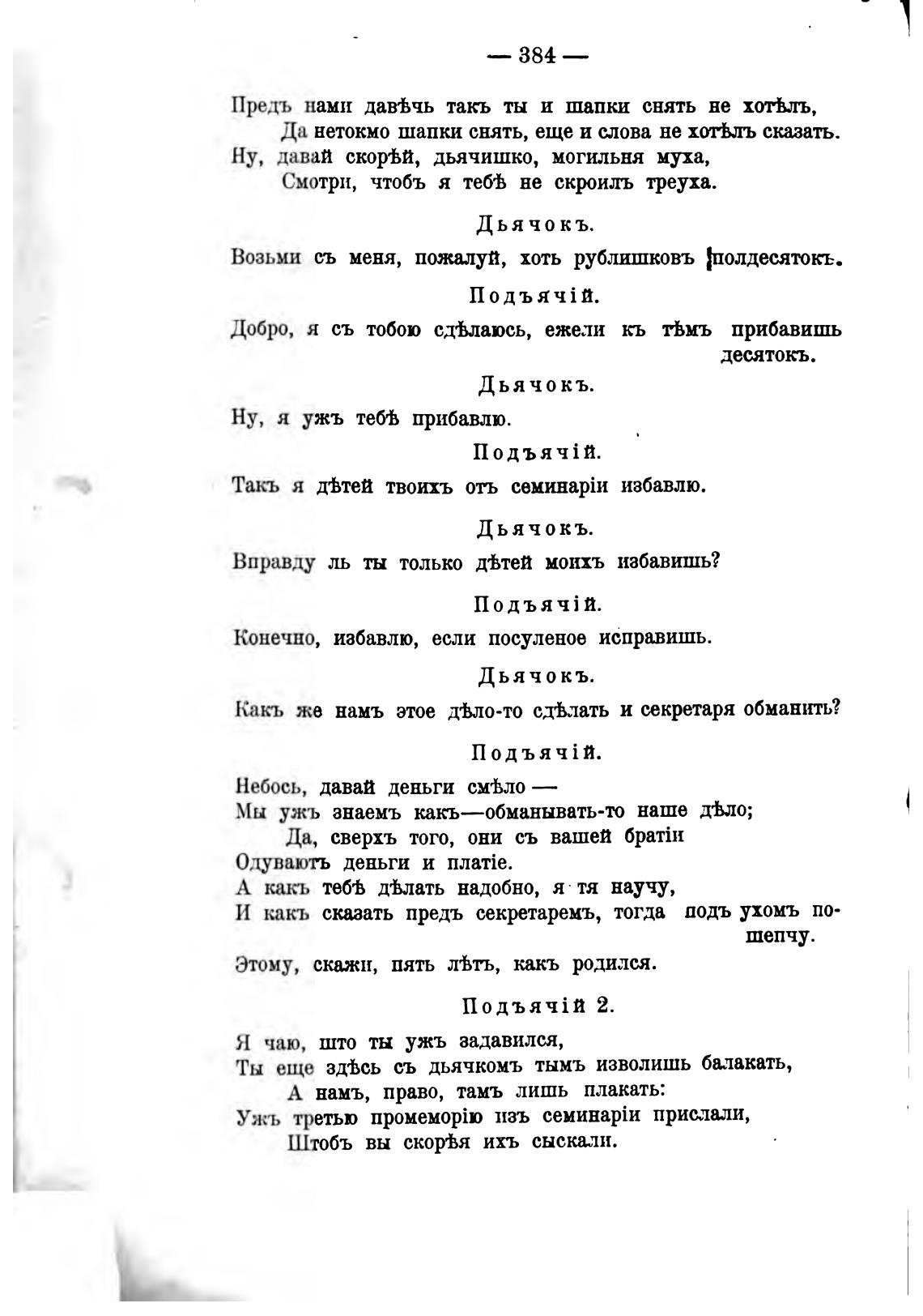 Ты еще здВсь съ дьячкомъ тымъ изволишь балакать,