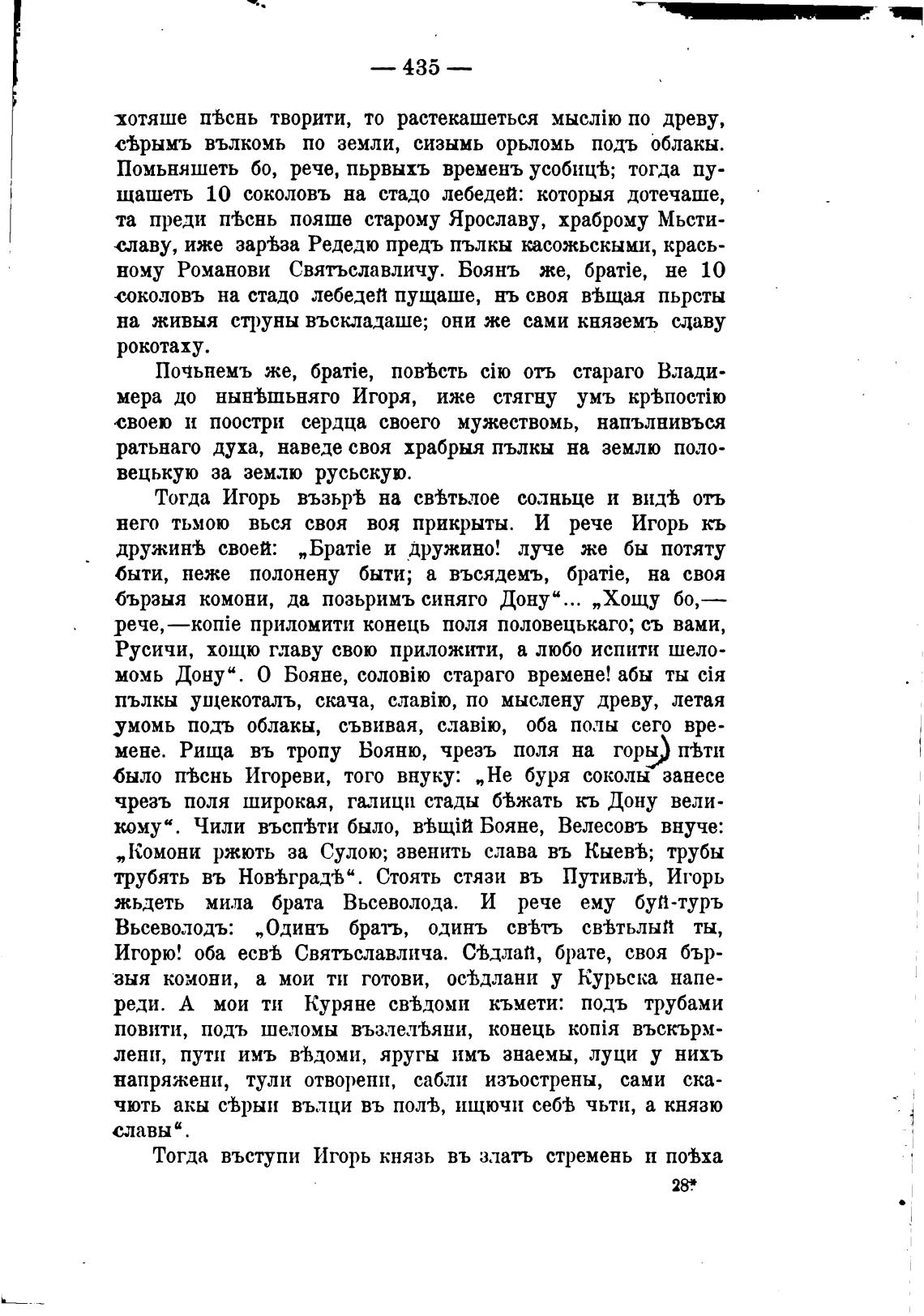 было п%снь Игореви, того внуку: „Не буря соколы занесе