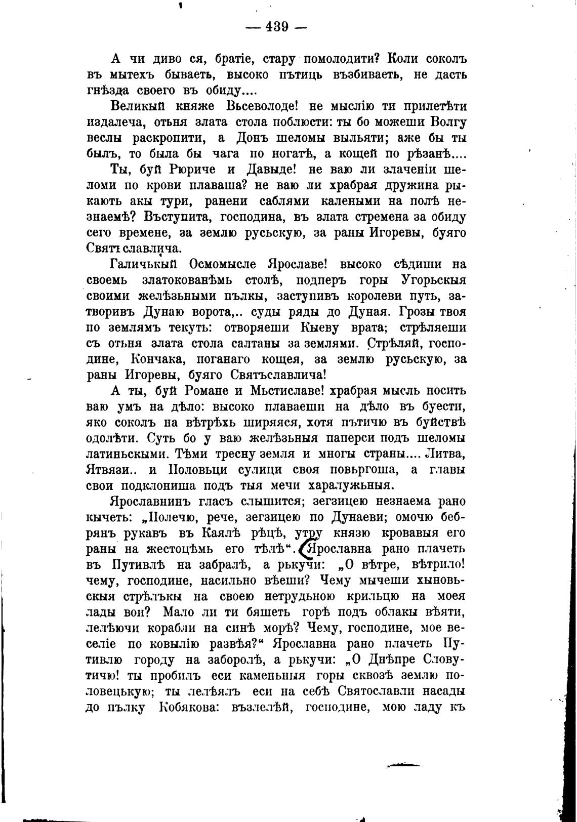 лады вои? Мало ли ти бяшеть гор'В подъ облакы веВяти,