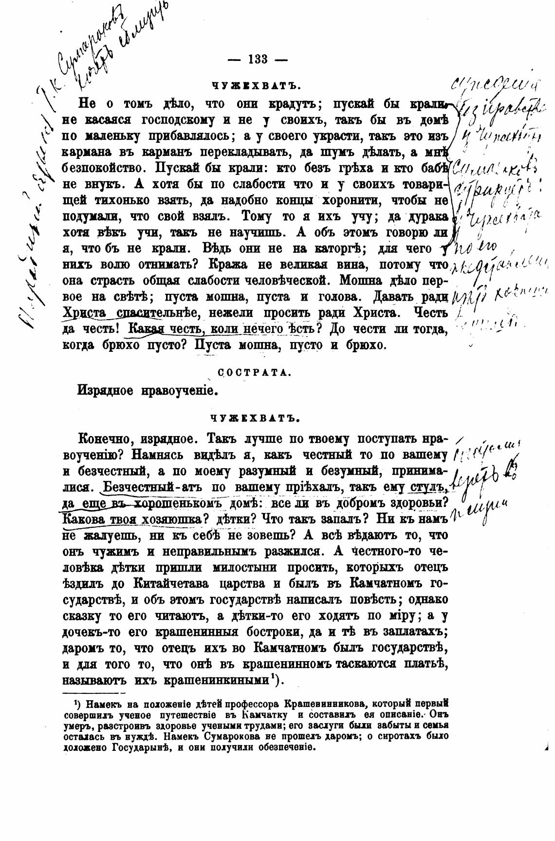 1) Намекь на n0i00Hie д±теИ профессора Крашенинникова, который первый