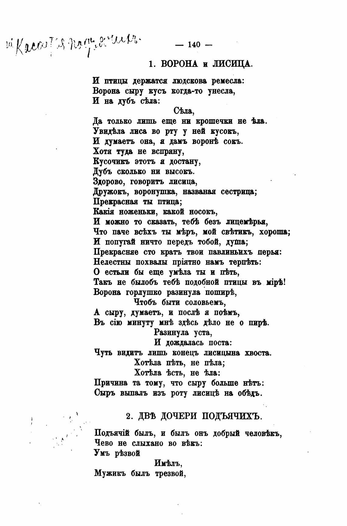 Ворона сыру вусъ когда-то унесла,