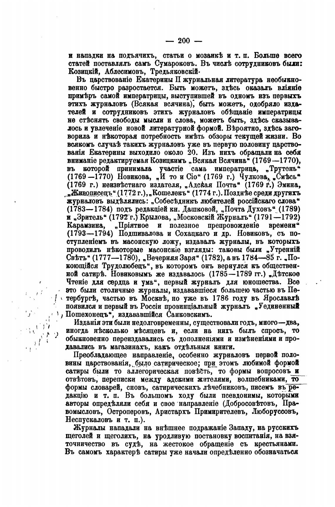 Въ Екатерины II журнальная лтература необыкно-