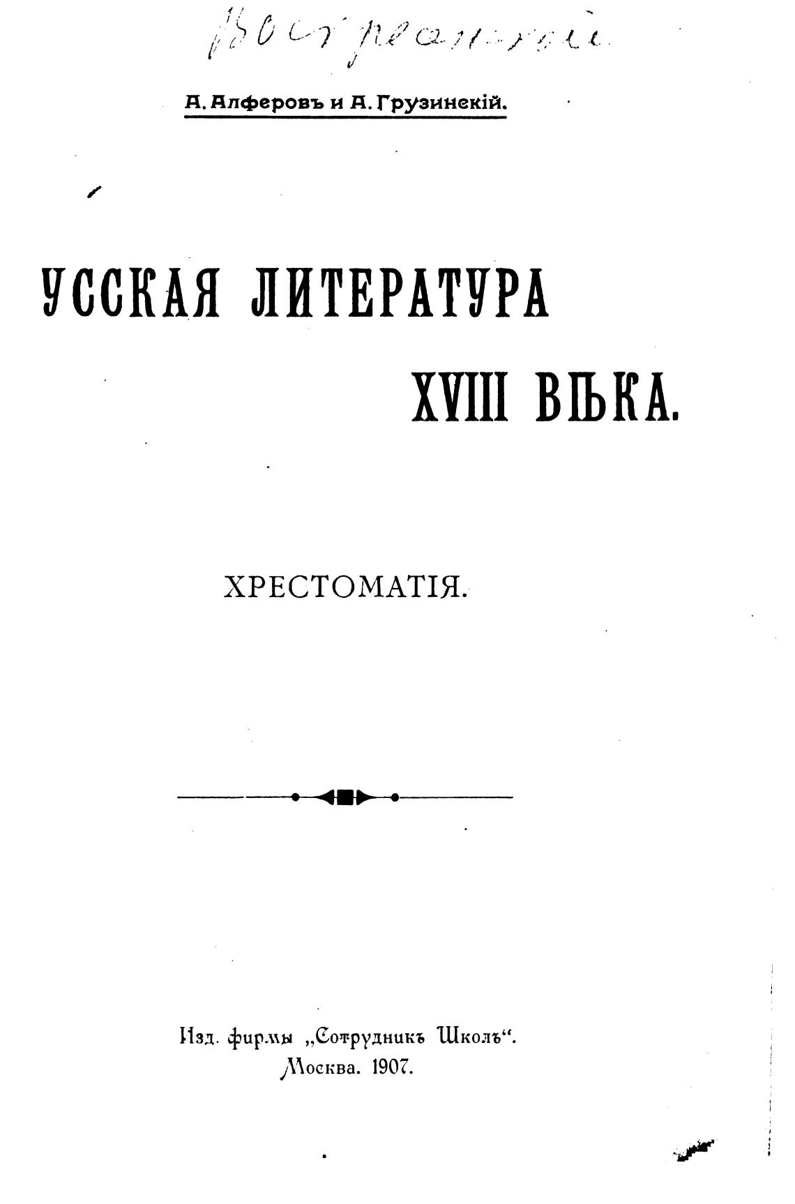 Русская литература XVIII века. Хрестоматия. - Алферов А., Грузинский А.