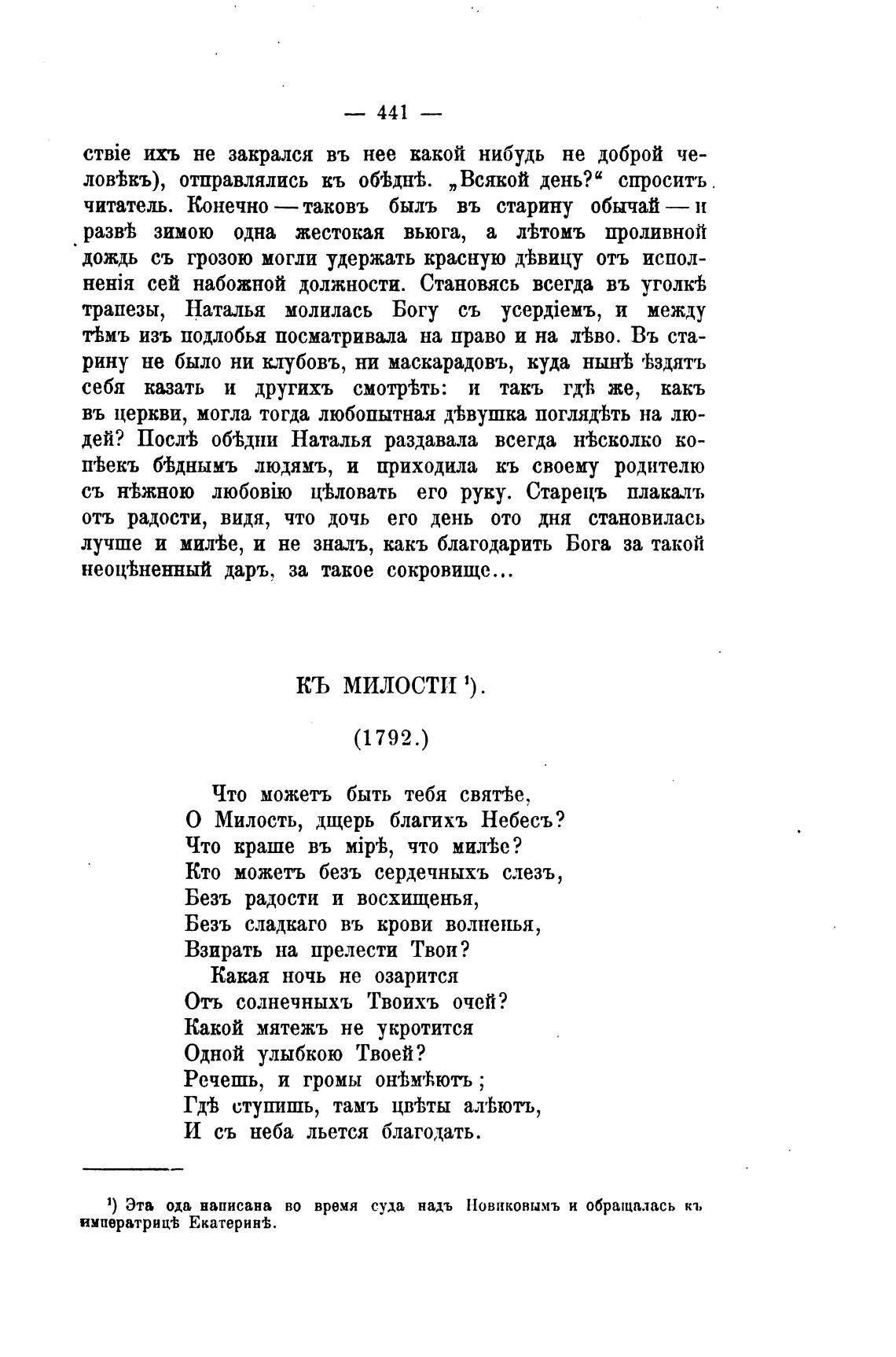 1) Эта ода написана во время суда надъ Новиковымъ и обращалась кт,