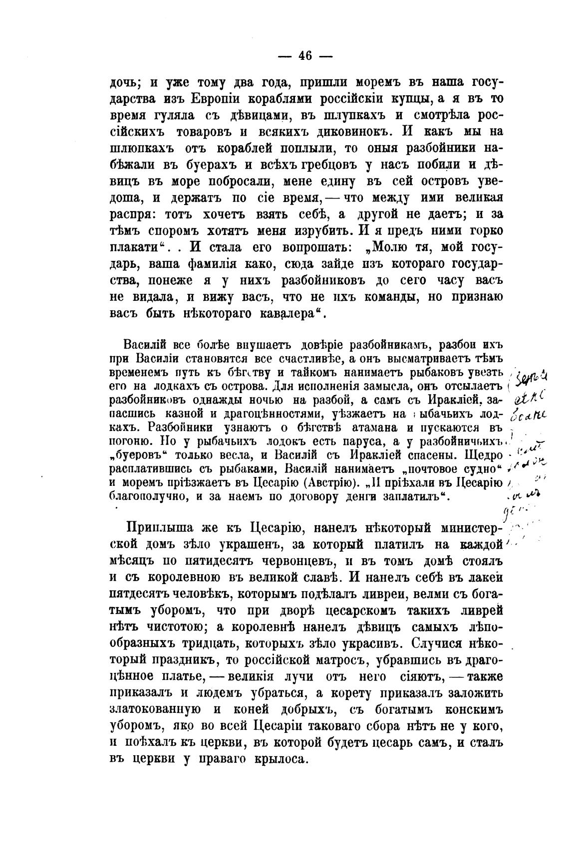 временемъ путь кь б%гству и тайкомъ нанимаеть рыбаковъ увезть
