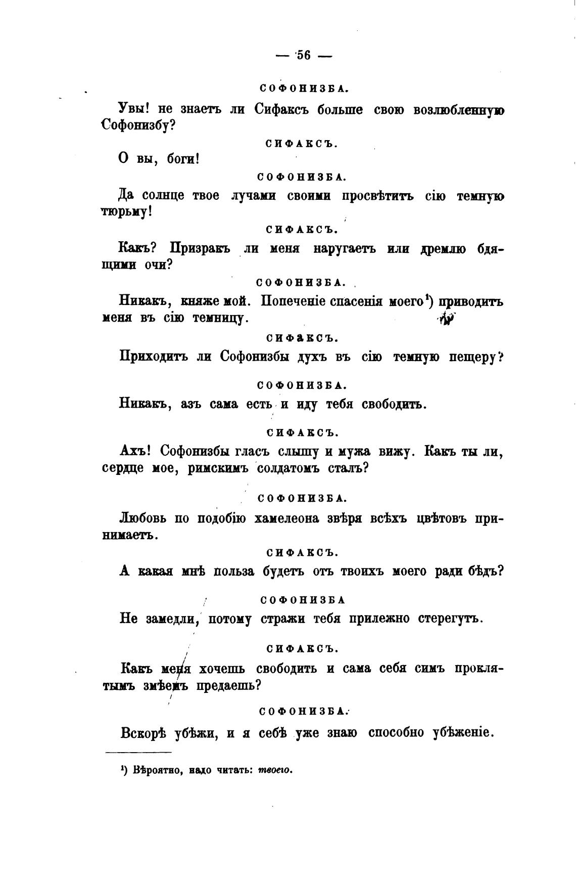 Ахъ! Софонизбы гласъ слышу и мужа вижу. Какъ ты ли,