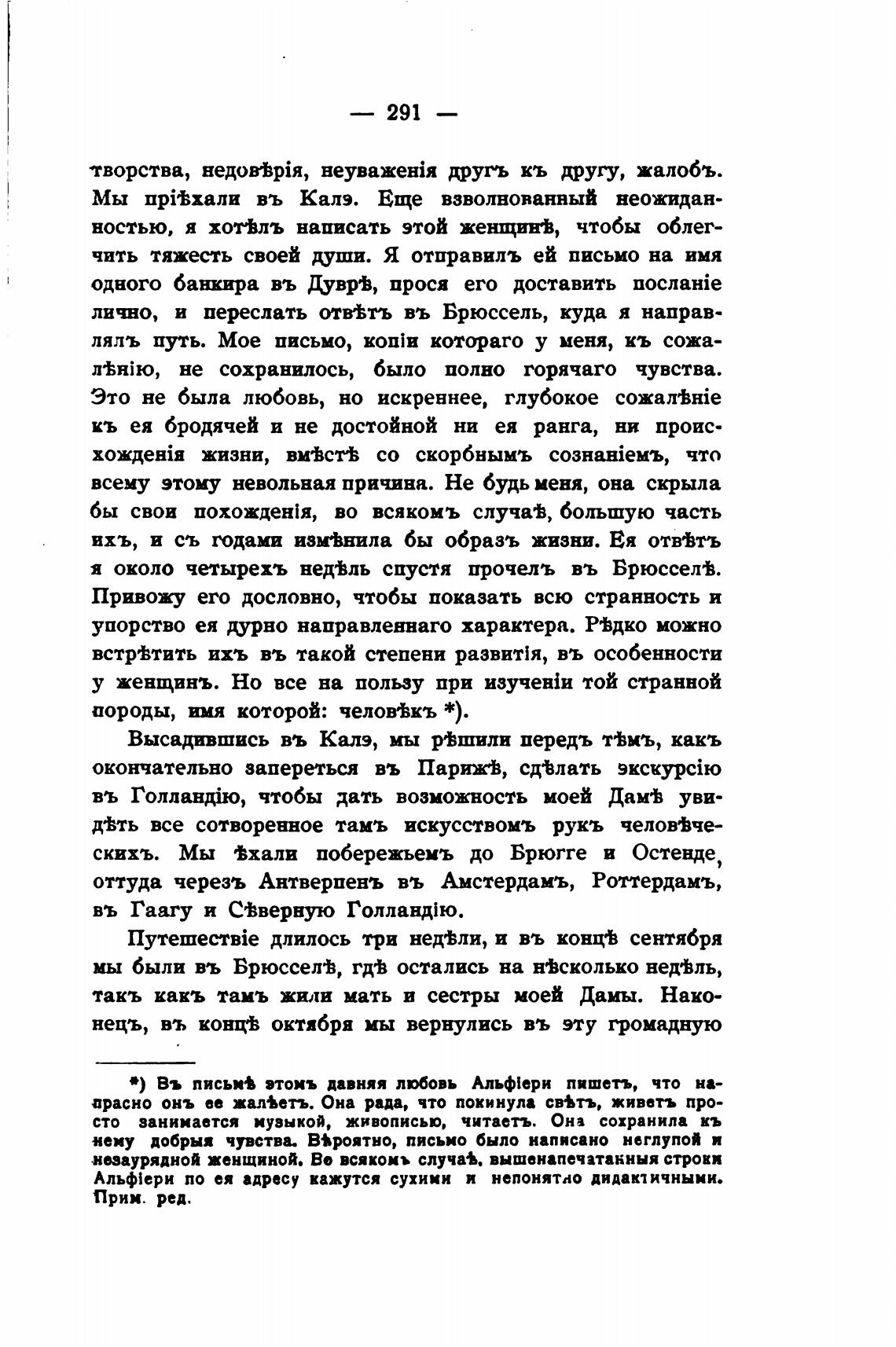 Въ письх• этонъ давняя любовь Альф[ери пишетъ, что на-