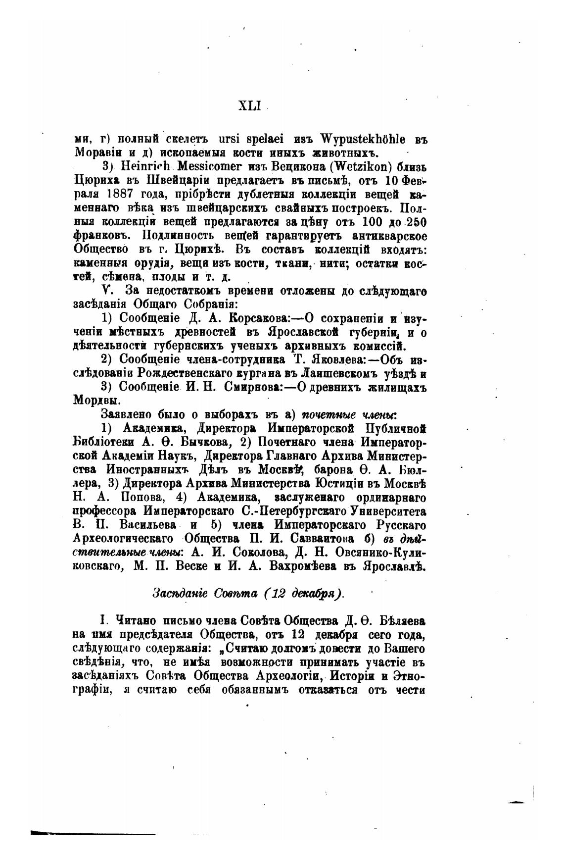 Заявлено было о выборахъ въ а) почетные члени: