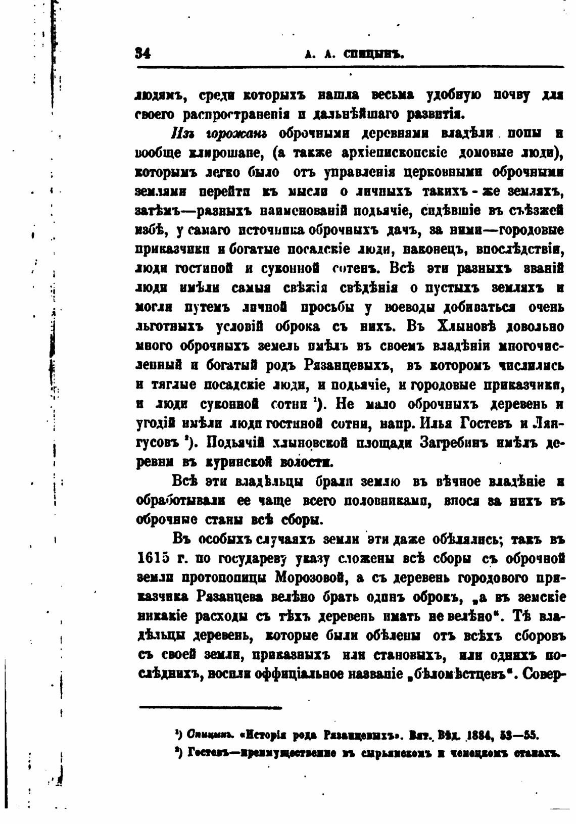 ленный и богатый родъ Рязанцевыхъ, въ воторомъ числились