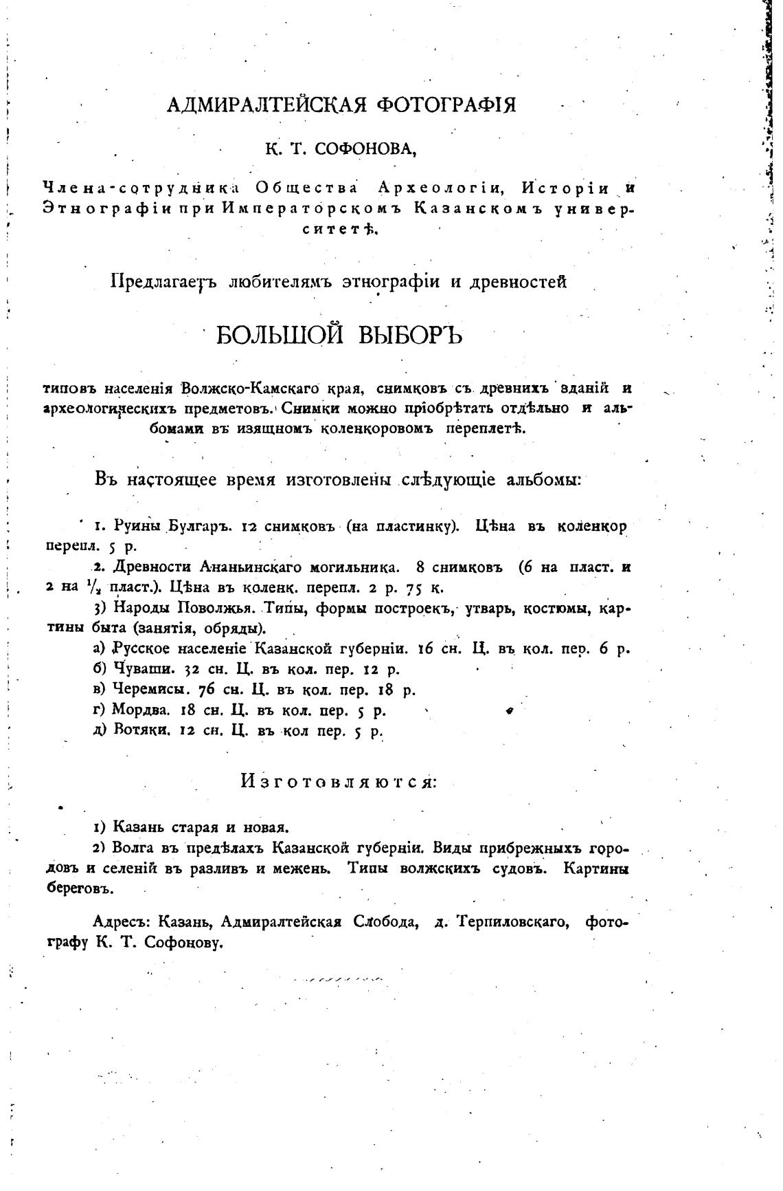 1. Руины Булгаръ. 12 снимковъ (на пластинку). Ц±на въ коленкор