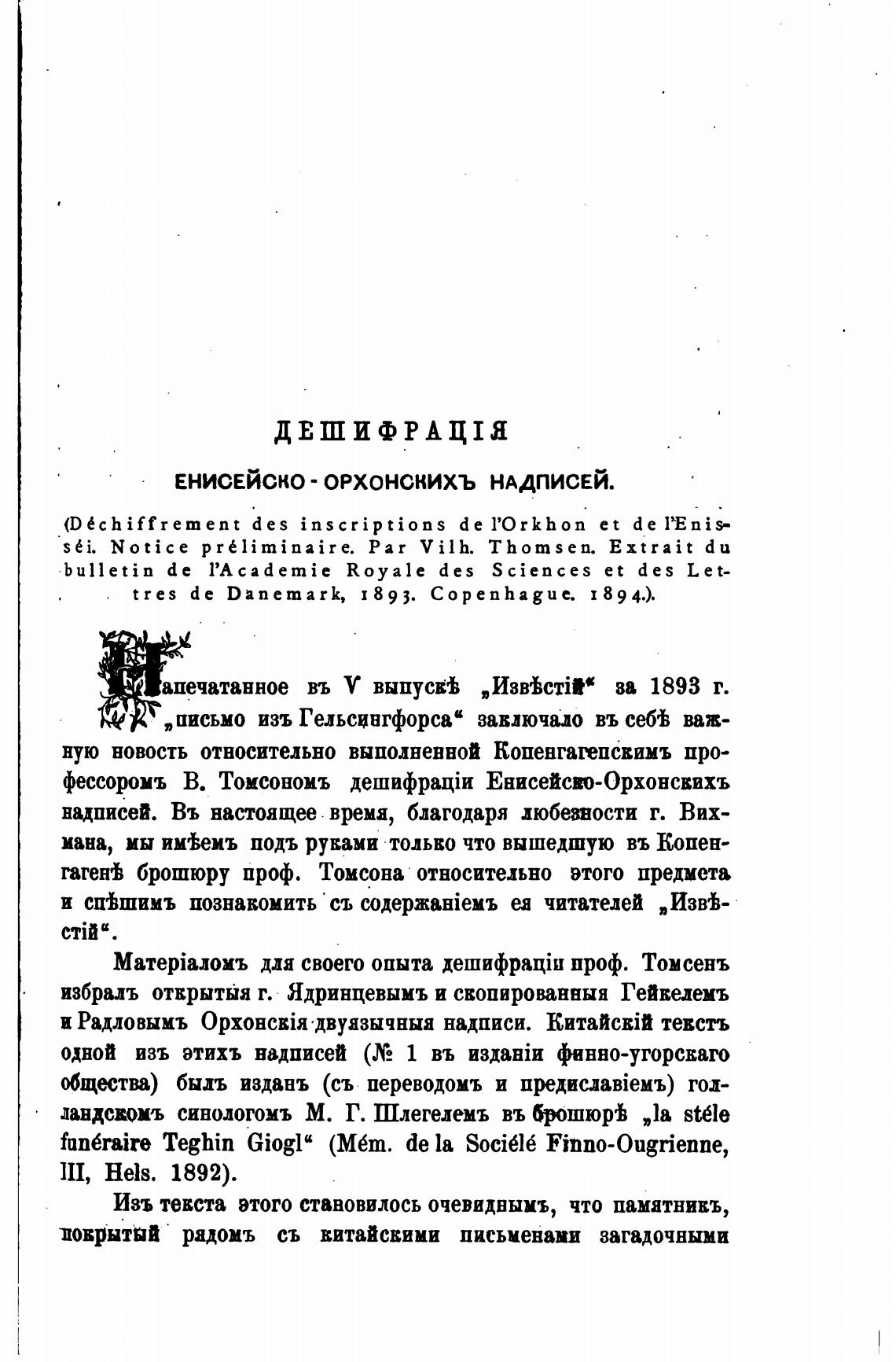 фессоромъ В. Томсономъ Енисейсо-Орхонсвихъ