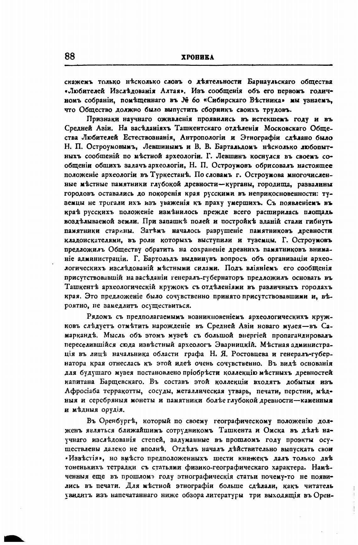 Hie Г. Бартольдъ выдвинувъ вопросъ объ архео-