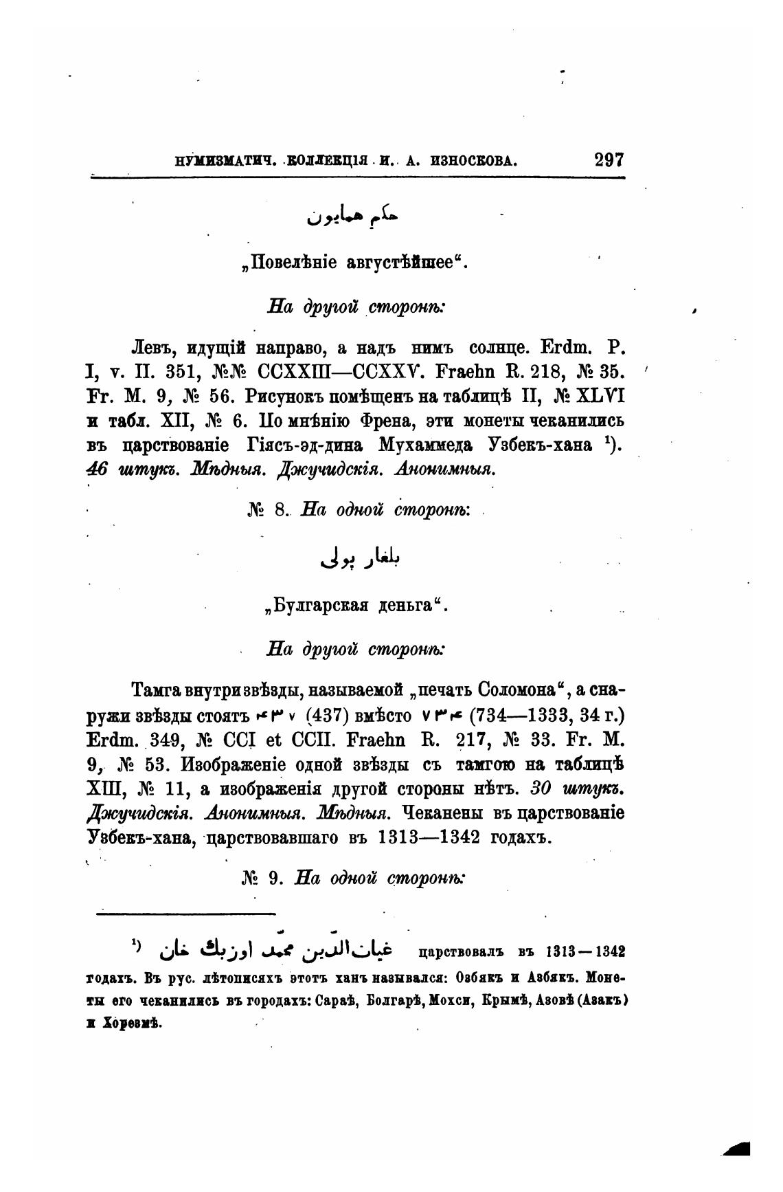 Erdm. 349, CCI et ССП. Fraehn R. 217, 33. Fr. М.