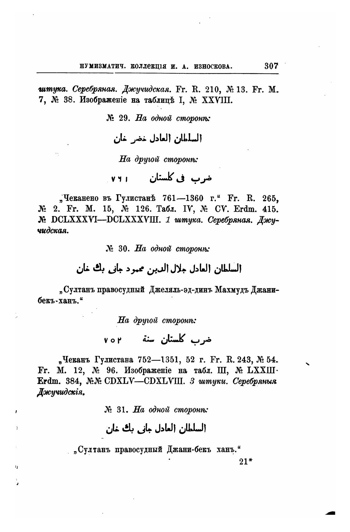 „Чеканено въ Гулистангь 761—1360 г.“ Fr. R. 265,