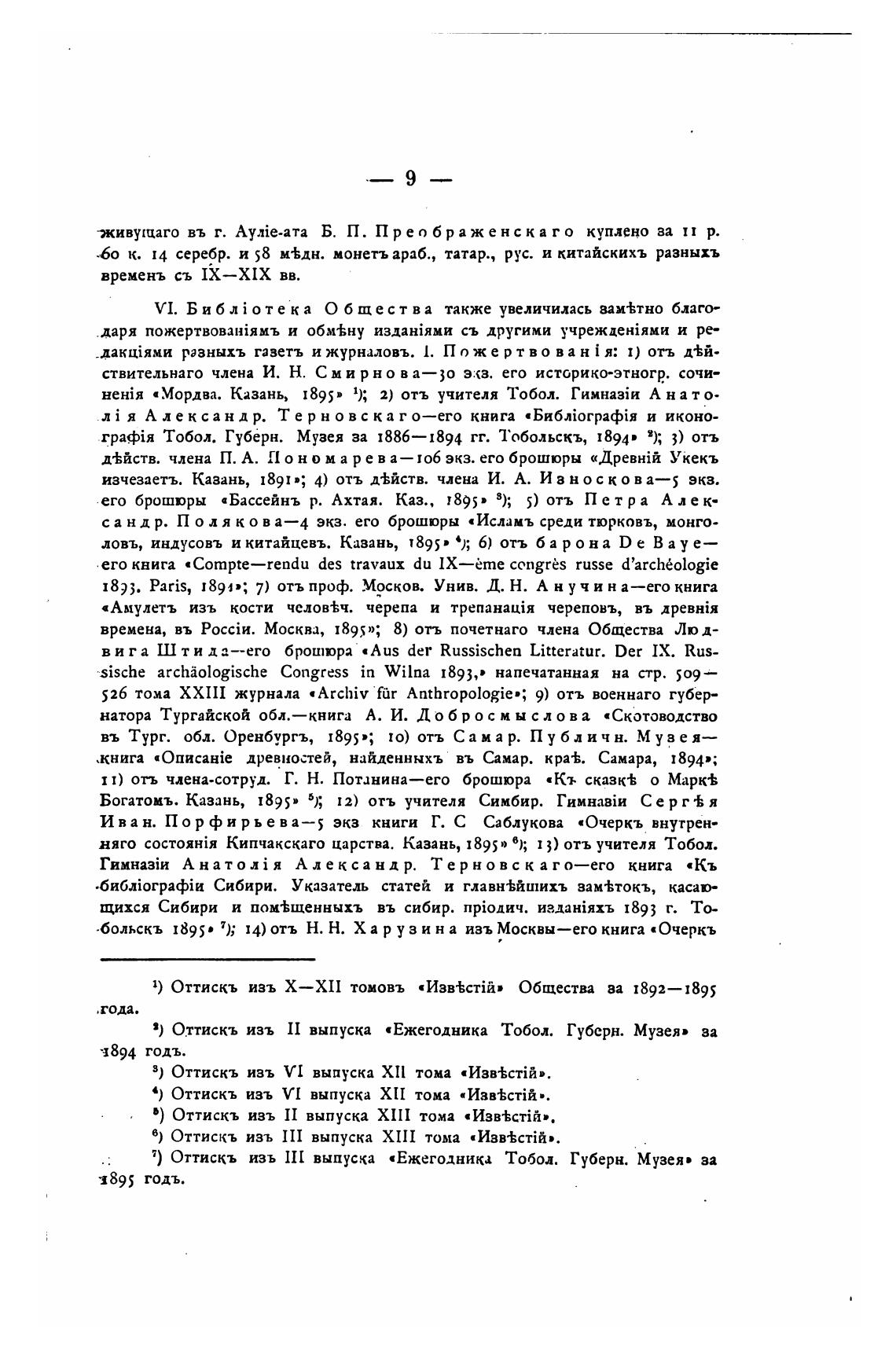 въ Тург. обл. Оренбургъ, 1895»; 10) отъ Сама р. Публичн. Музе я—