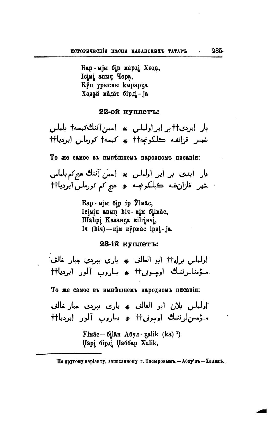 ПвСНИ КАЗАНСКИХЪ ТАТАРЪ