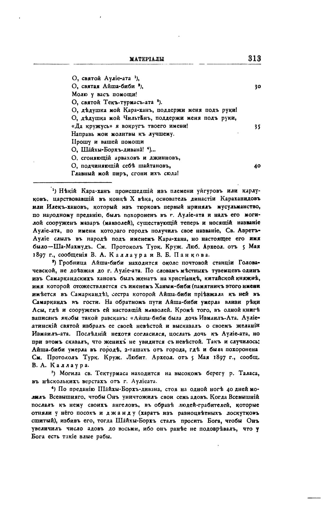 записанъ якобы такой равсказъ: «Айша•биби была дочь Иамаилъ-Ата.