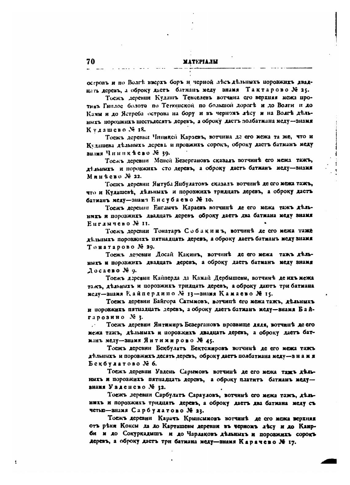 тажъ, д±льныхъ и порозжихъ тридцать деревъ, а оброку »отъ три батмана
