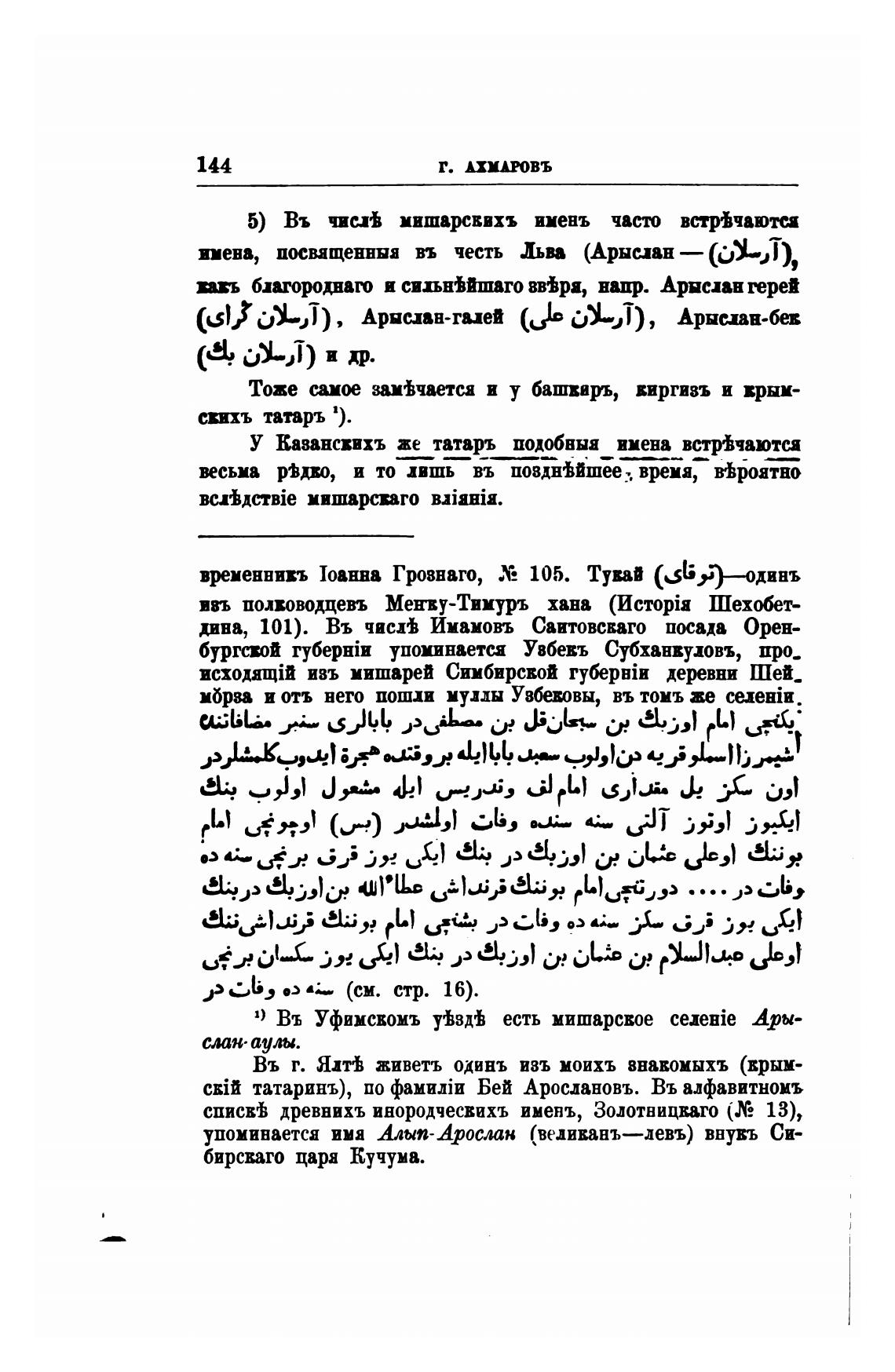 татаринъ), по Бей Арослановъ. Въ алфавитномъ
