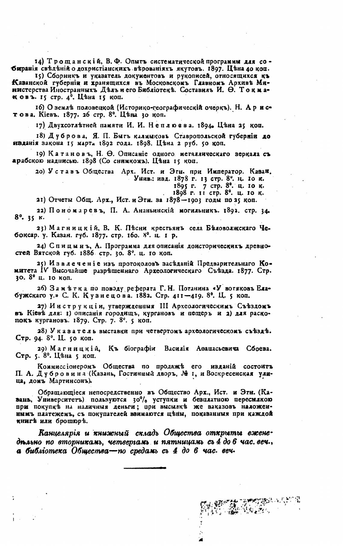 20) У с та въ Общества Арх. Ист. и Этн. при Император. Каван.