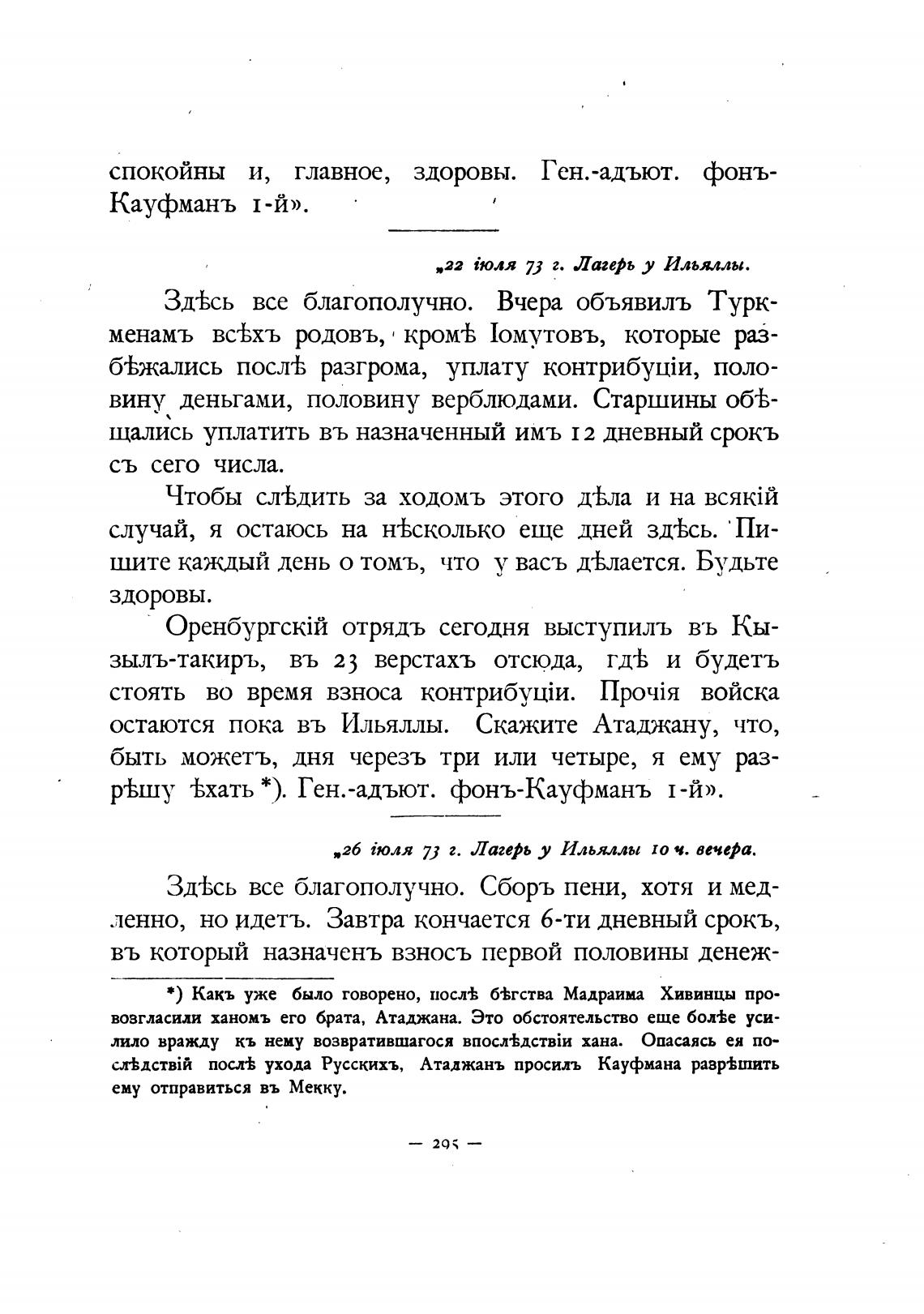 посл± ухода Русскихъ, Атаджанъ просилъ Кауфмана равр±шить
