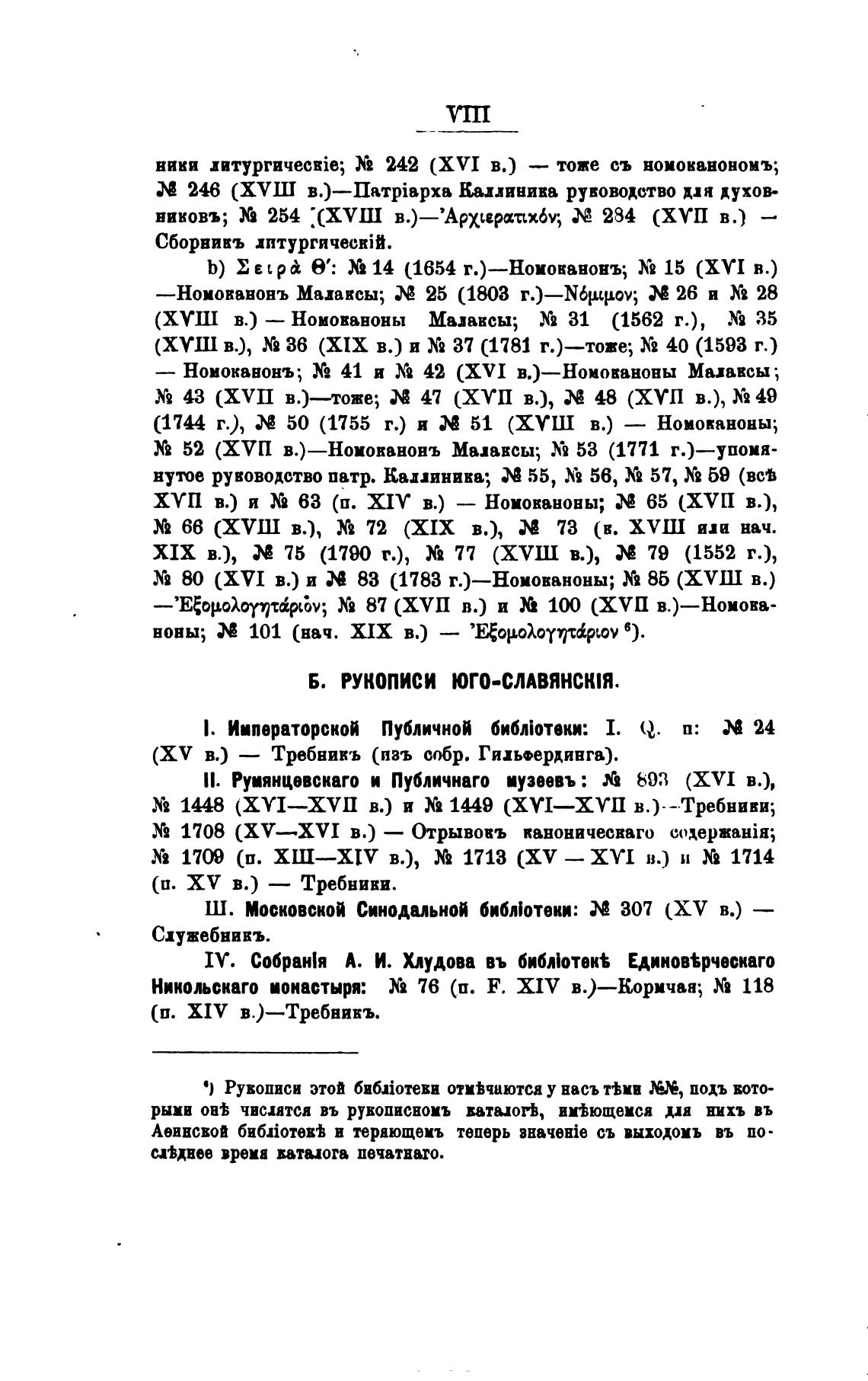 е) Рувописи этой бибјотеви отм%чаютса у насъ Вми И, подъ кото-