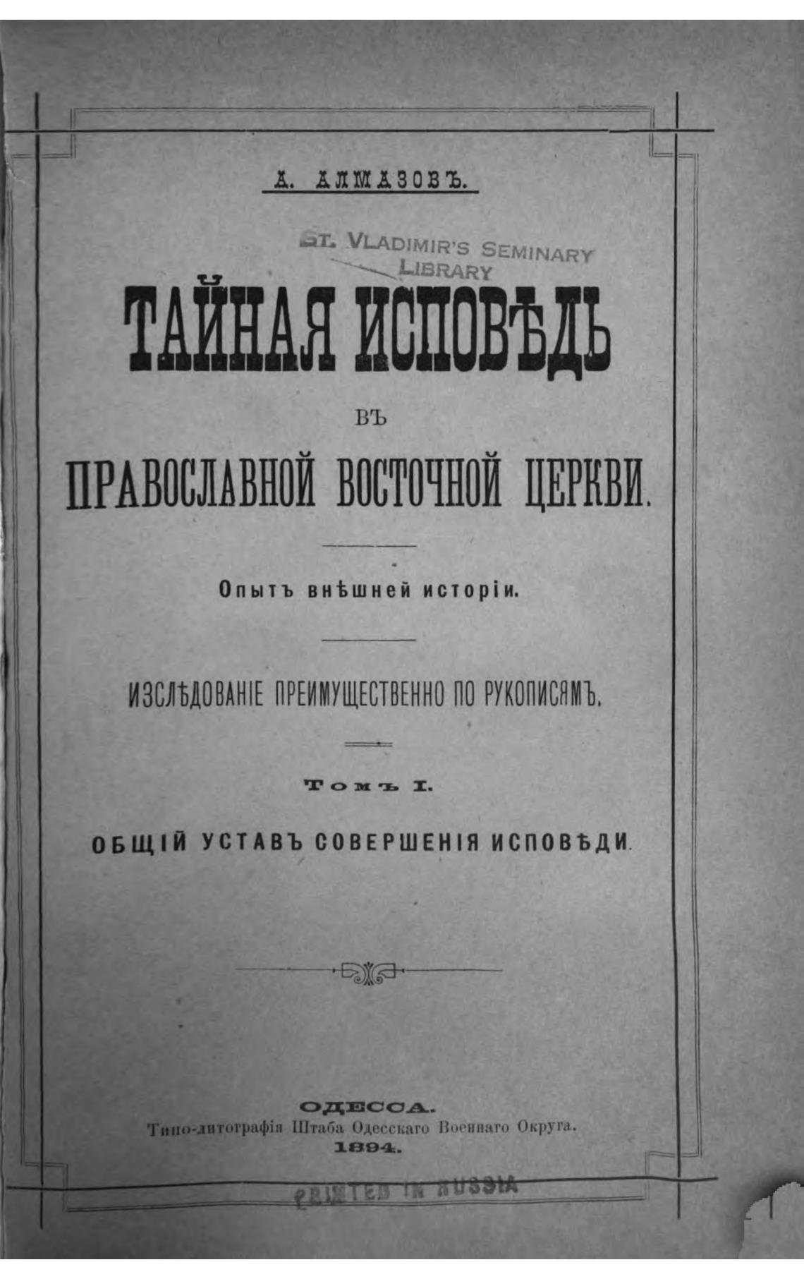 ТАЙНАЯ ИСПОВЪДЬ