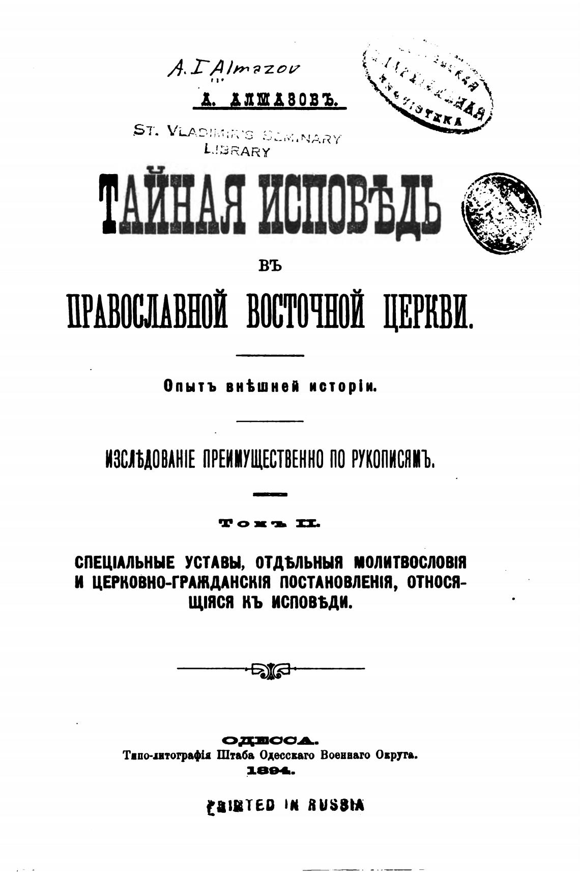ШАВОСЈИВНОИ ВОСТОЧНОЙ ЦЕРКВИ.