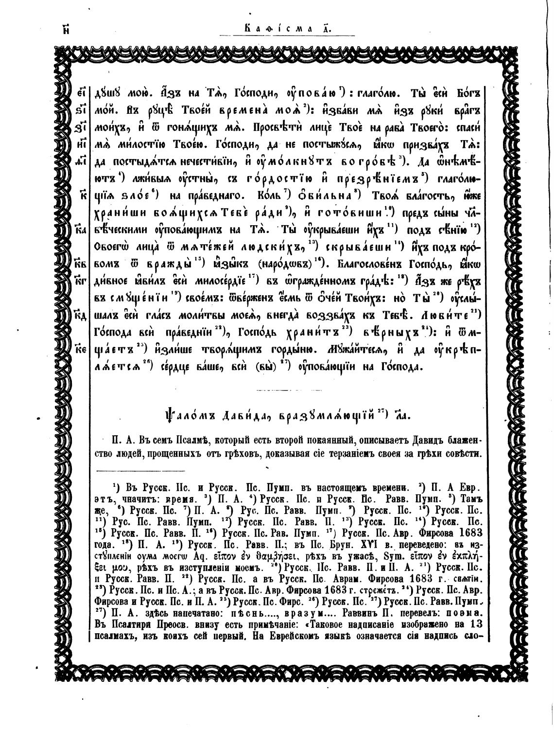 и Рус,ск. Равв. П. 22) Рус.ск. Пс. а въ Русск. Пс. Авраи. Фирсова 1683 г. CBMiH.