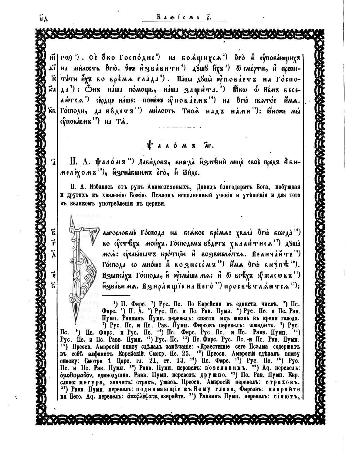 1) II. Фирс. 2) Рус. Пс. По Еврейски въ единств. чисЛ. 3) Пс.
