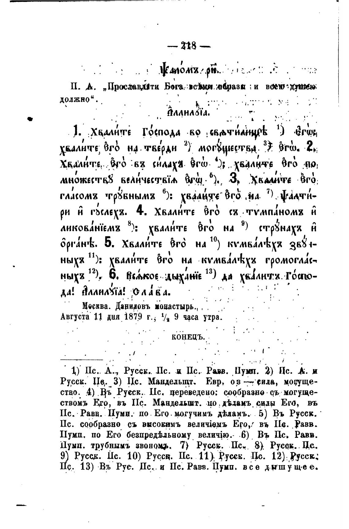 11уип. по Его безпредььному .б) Въ Пс. Равв.