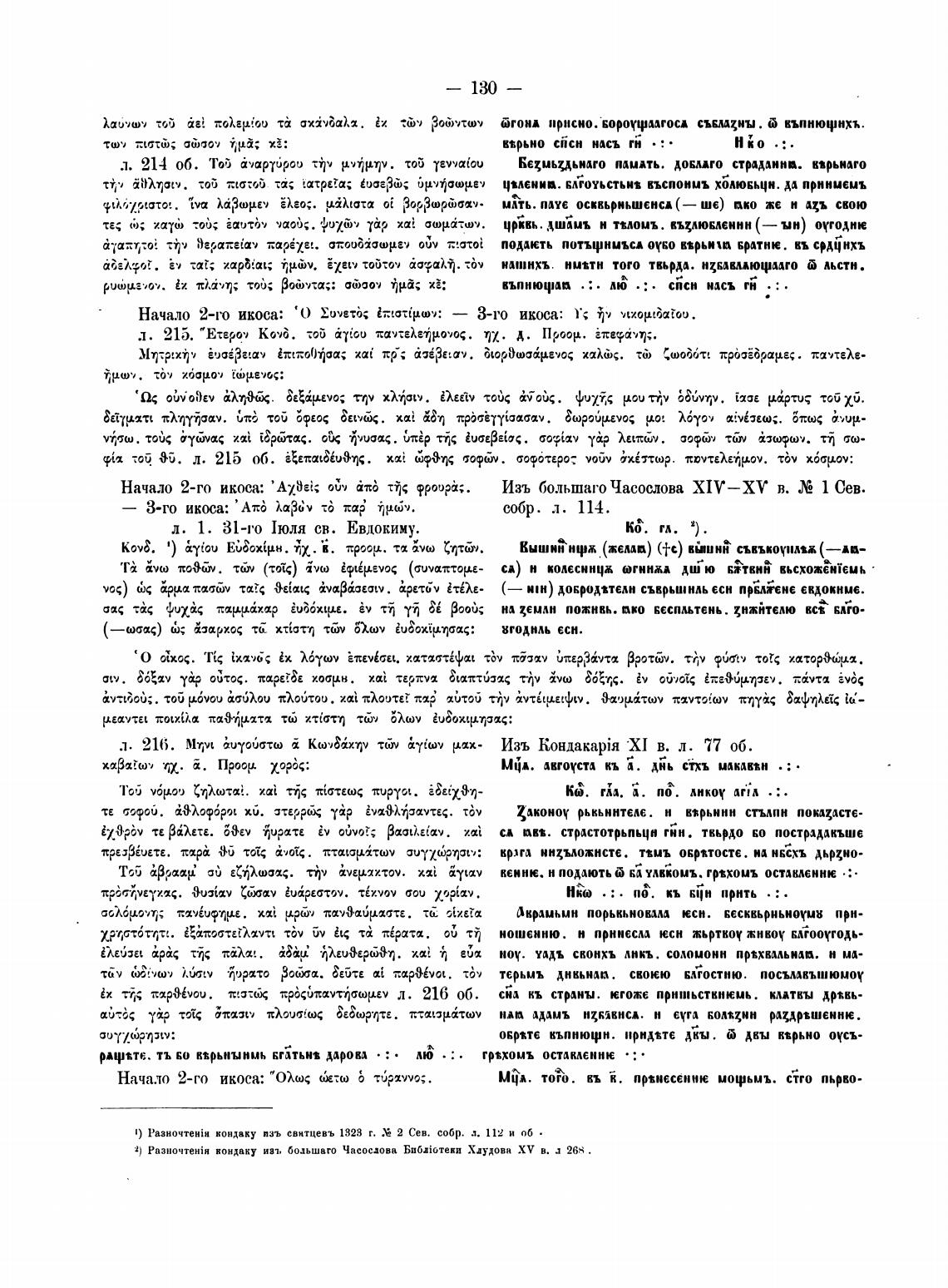 1) Разночте'йн кондаку пзъ свнтцевъ 1323 г. 2 Сев. собр. 112 и об •