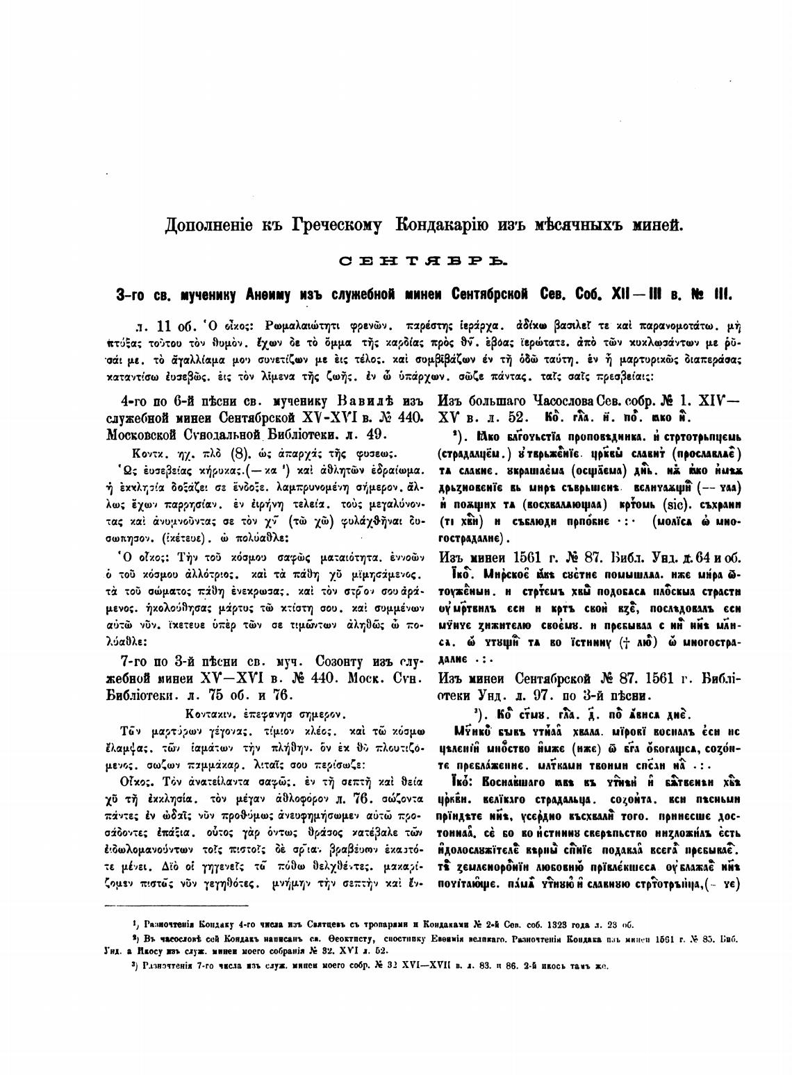 3-го св. мученику Анеииу изъ служебной иинеи Сентябрсной Сев. XlI— в. lIl.