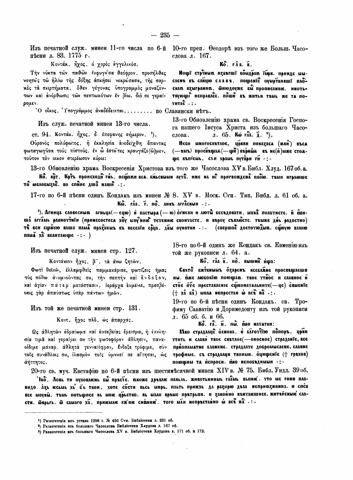 17-го по 6-И одинъ Кондакъ изъ минеи 8. ХУ в. Моск. Сун. Тип. Библ. л. 61 об. а.
